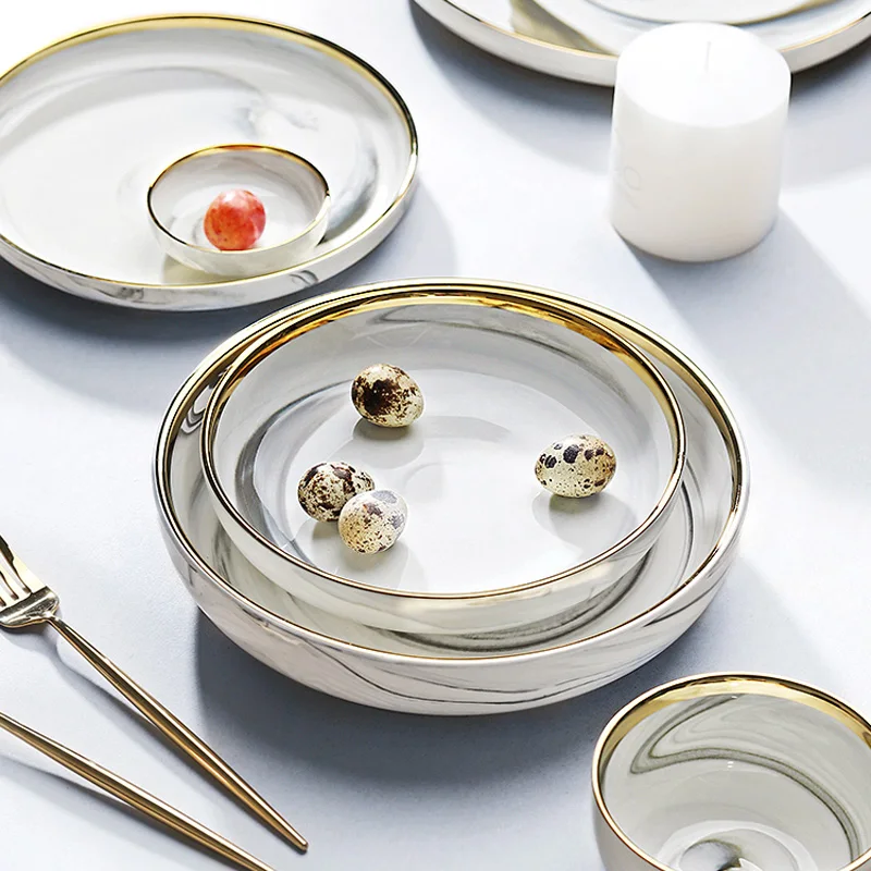 Золотая инкрустация тарелки для закуски роскошные золотые края тарелка