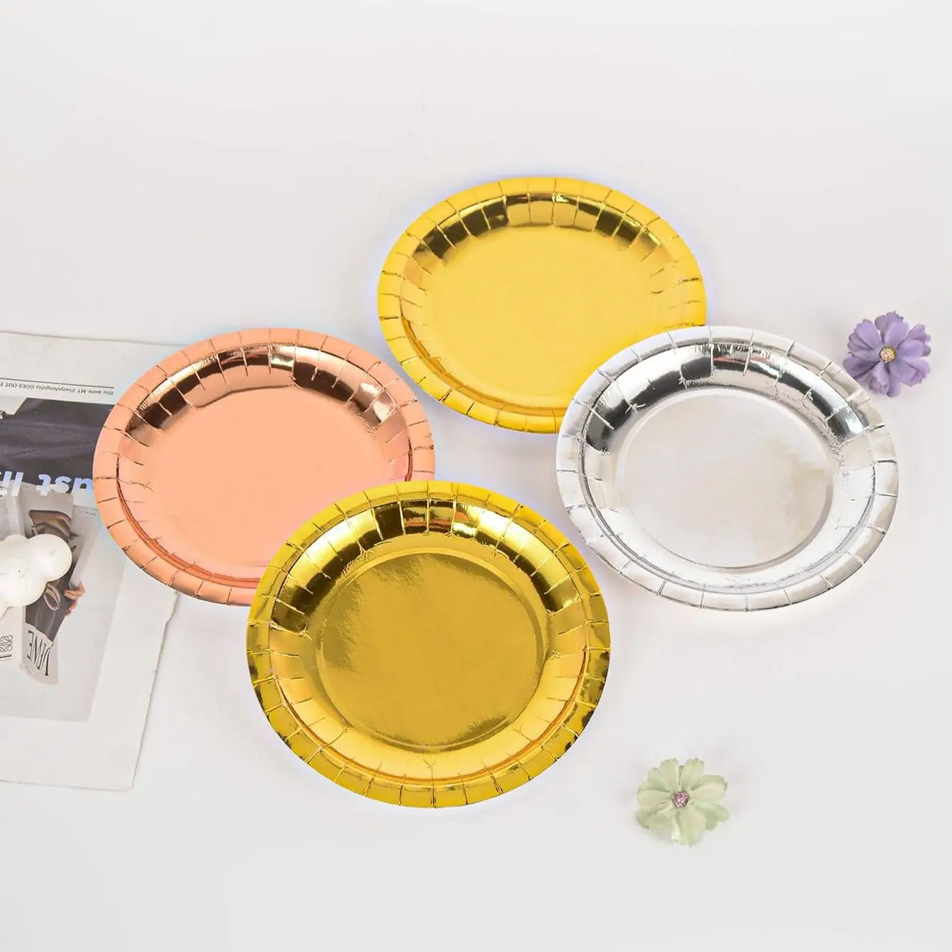Позолоченные золотые, розовые, золотые, серебристые одноразовые тарелки