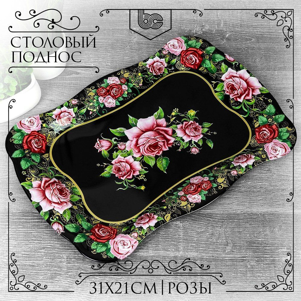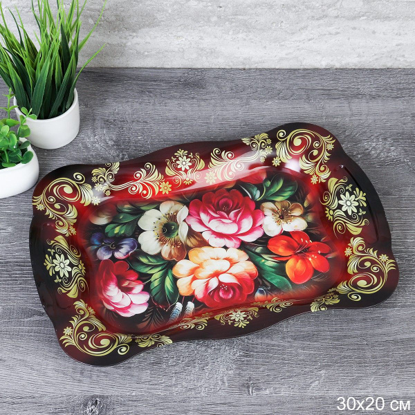 Поднос металлический "Розы"" 30х20 см, разноцветный купить на OZON по