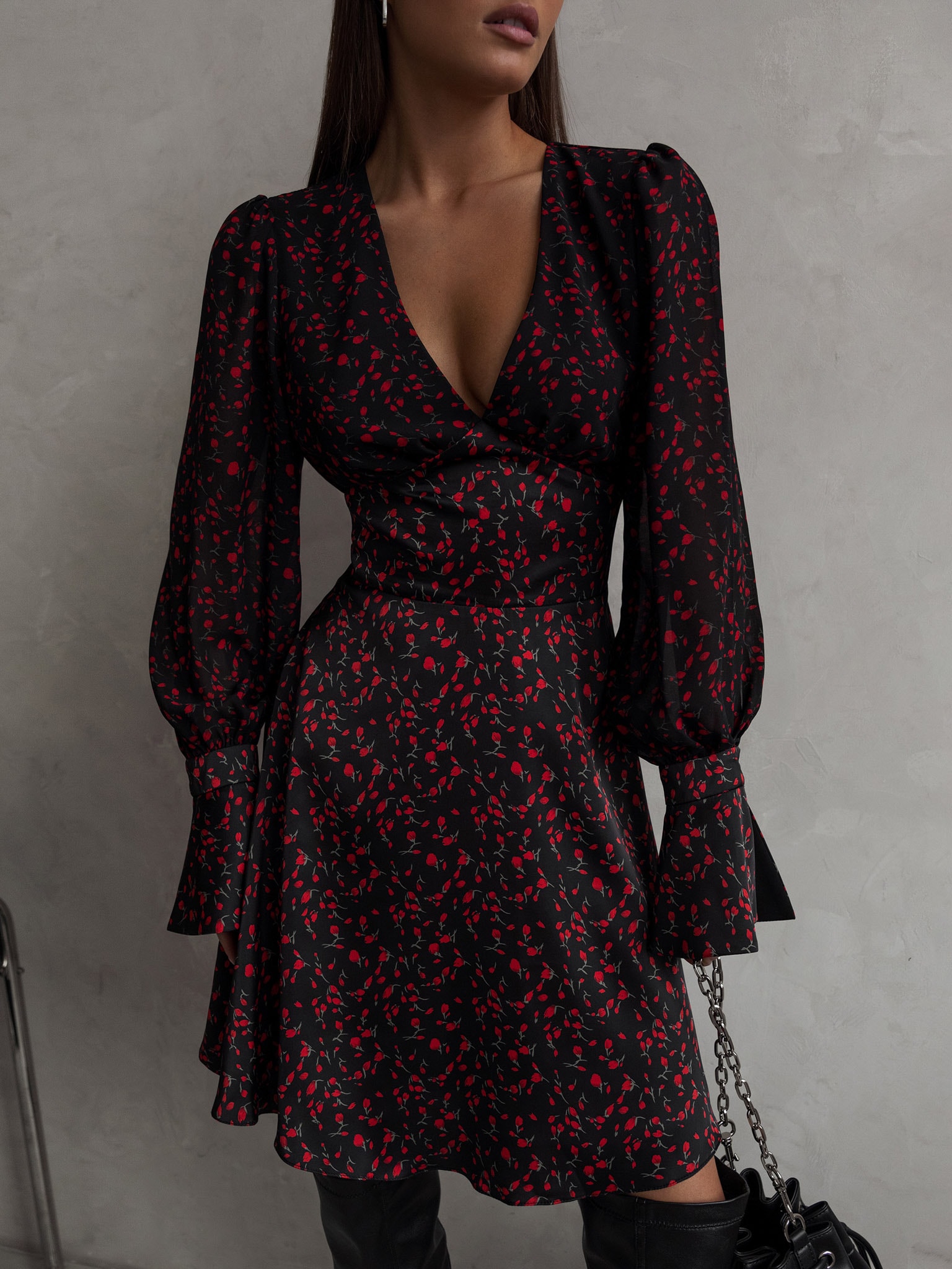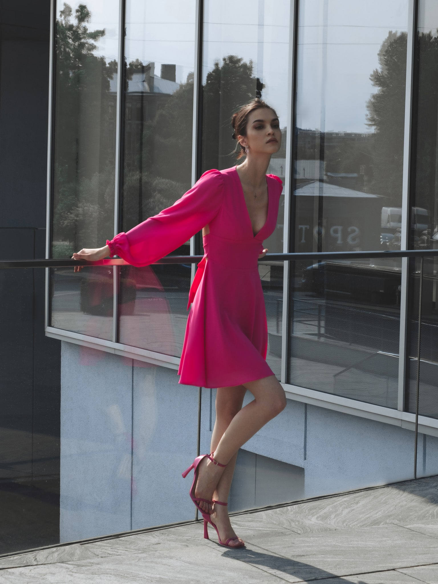 Платье мини с объемными рукавами и вырезом на спинке :: LICHI