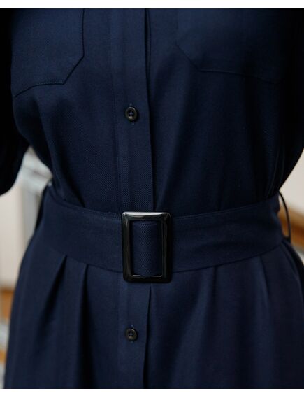 Платье-рубашка с поясом прямой силуэт тёмно-синия