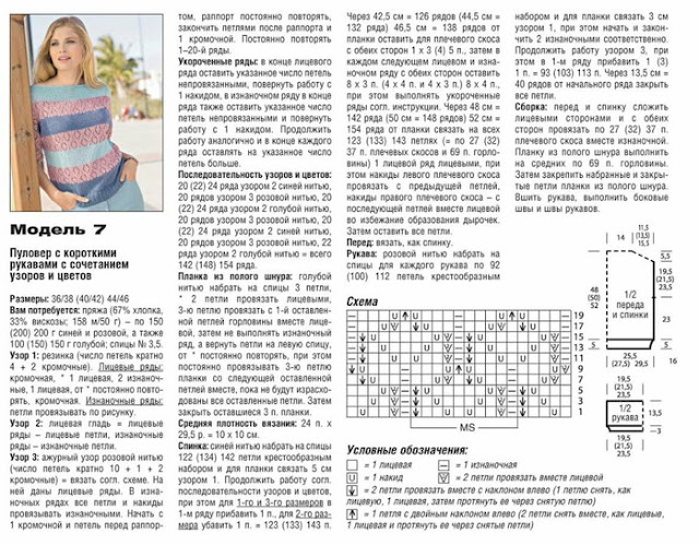 Пуловер с короткими рукавами с сочетанием узоров и цветов