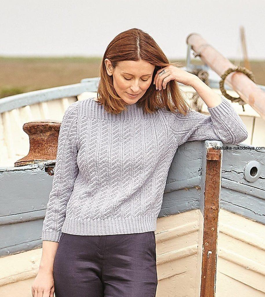 Пуловер с вырезом «лодочка» (Вязание спицами)