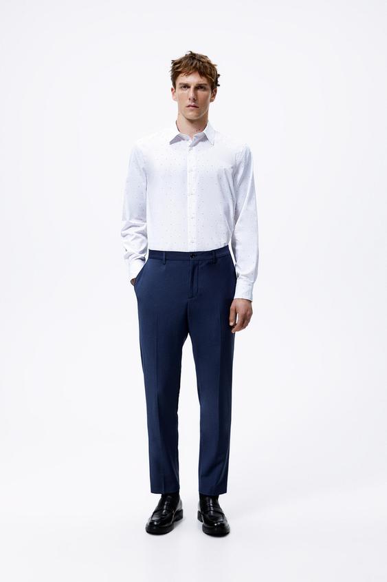 РУБАШКА С ПРИНТОМ В ГОРОШЕК ПРИЛЕГАЮЩЕГО ПОКРОЯ